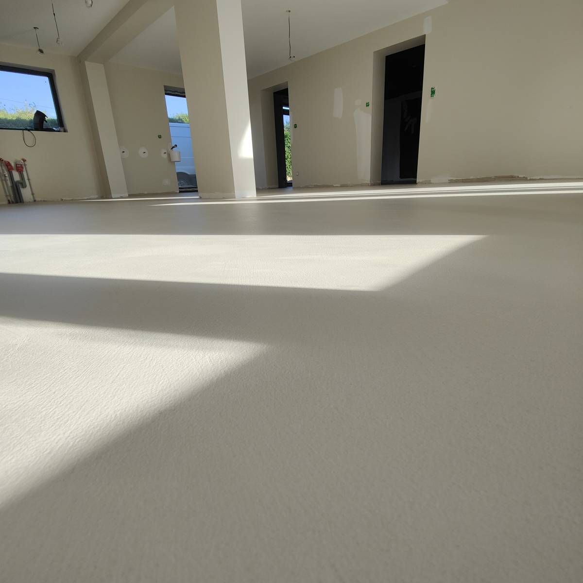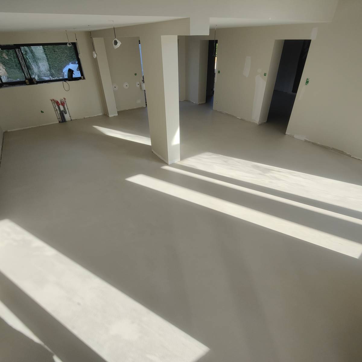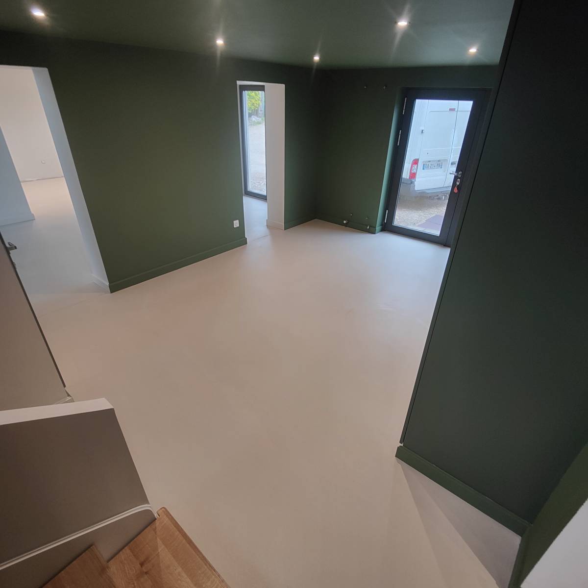C'est à Besançon dans le Doubs, que nous avons réalisé la pose d'un béton ciré taloché avec un rendu volontairement peu nuancé, fidèle aux attentes de discrétion de notre client, dans un espace destiné à accueillir des éléments de décorations forts.