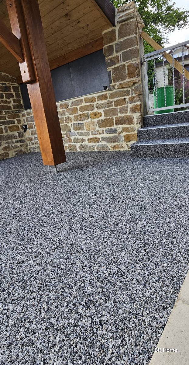 La moquette de pierre est une solution, les caractéristiques d'adhérence élevées de la résine permet au revêtement de rester stable malgré les variations de température importantes.