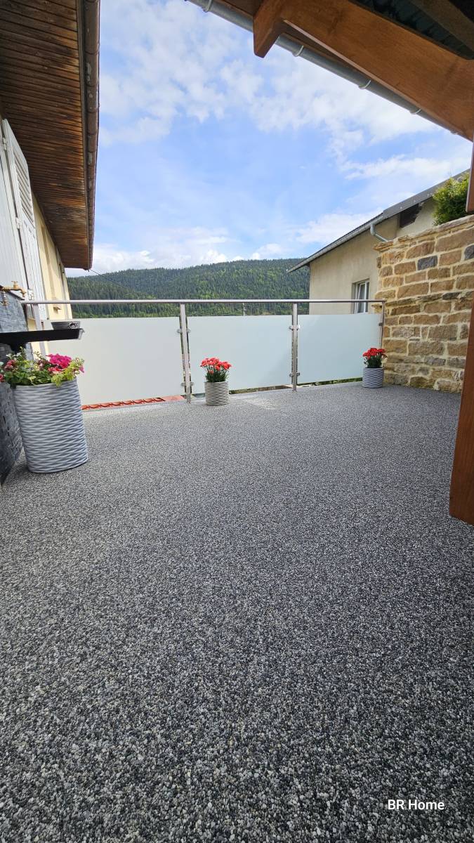 Vous souhaitez découvrir d’autres réalisations de revêtement de sol extérieur dans le Doubs ? Nous vous invitons à consulter également notre projet de "moquette de pierre sur balcon à Jougne".