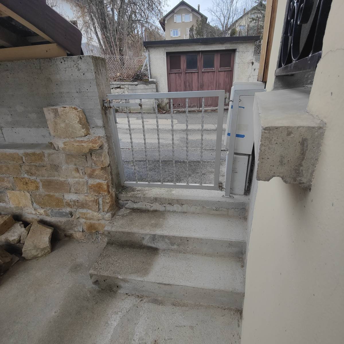 Nous avons réalisé la pose d’une moquette de pierre à Villers-le-Lac dans le Doubs, sur une terrasse accompagnée d'un escalier.