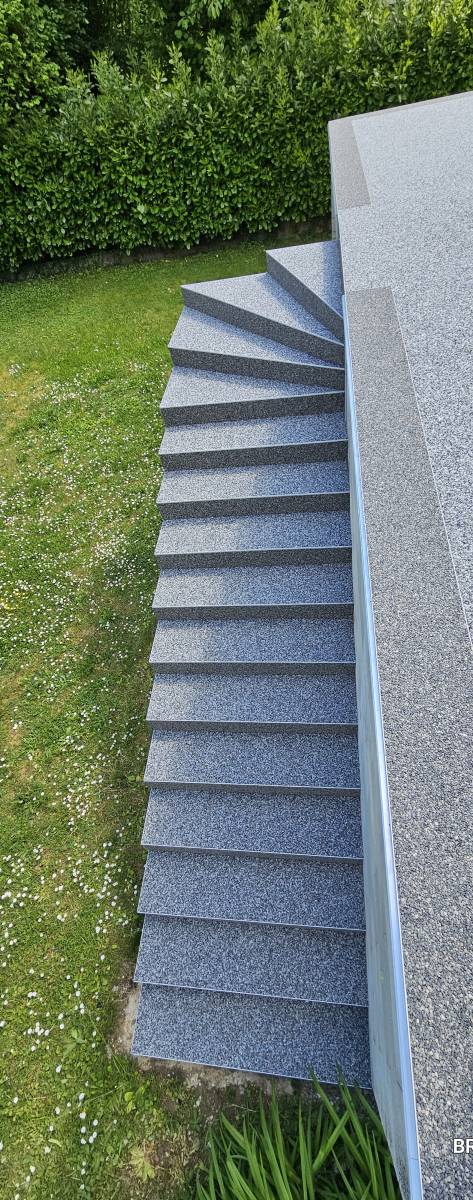 Ce chantier à Couternon illustre parfaitement l’intérêt de la moquette de pierre sur un escalier extérieur : un revêtement sécurisant, confortable à l’usage et durable, parfaitement intégré à l’environnement.